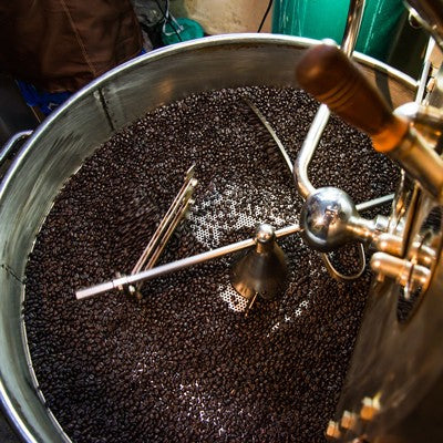 Exakt und schonend. In einer rotierenden Trommel wird jede Kaffeesorte einzeln veredelt. Nur so kann die Röstzeit exakt auf die Eigenheiten des jeweiligen Rohprodukts abgestimmt werden – für eine optimale Entwicklung der Aromen.